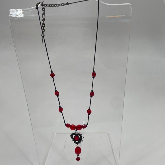 Vampire goth whimsygoth Robert Rose red heart beaded necklace