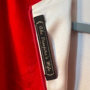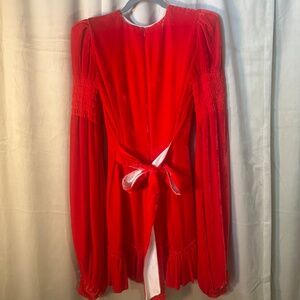 Long sleeve red velvet mini dress with center back zip and tie. Soft and fully lined, this is the perfect dinner party or holiday dress from a iconic yet sadly extinct brand.