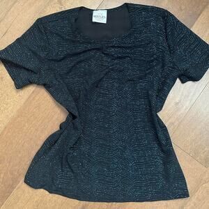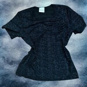Black and silver glitter 80s stretchy top with a V-neck and short sleeves