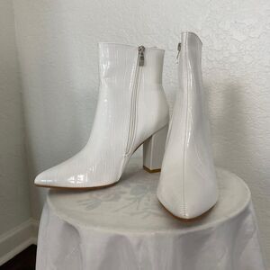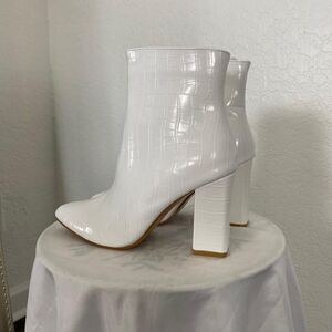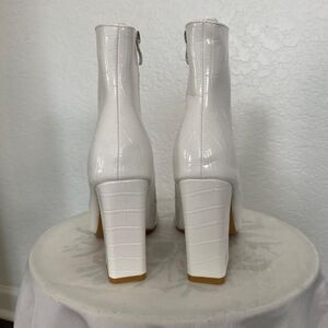 Vampy Bratty White Faux Leather Croc Snake Ankle High Heel Boots Booties 8.5