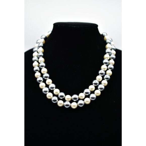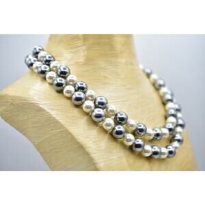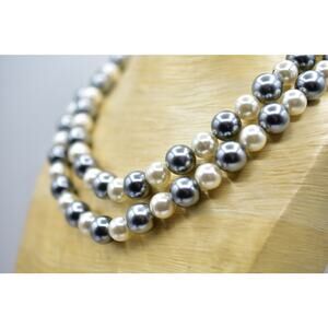 Van Allen Vintage Necklace Faux Pearl Gray White Beaded Robinson's NOS 80s Bin5