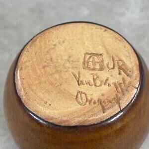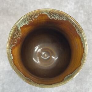 The Van Briggle Pottery Company was a highly influential American art pottery firm founded in Colorado Springs in 1899 by artist Artus Van Briggle. Their green glazed ceramics from 1900-1920 are iconic American ceramics. Simple and modern for the time. This is from that next period of 1920-40's brown glaze. A good small piece with a rich history and this is that smaller vase scale that people call a miniature cabinet vase often.