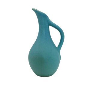 This exquisite vintage Van Briggle ewer pitcher from the 1960s is a collector's dream. Its stunning turquoise hue and excellent condition make it a perfect display piece. Signed by the artist, it's a testament to classic mid-century design.