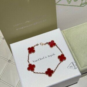 Van Cleef & Arpels Red Five Flower Four Leaf Clover Bracelet