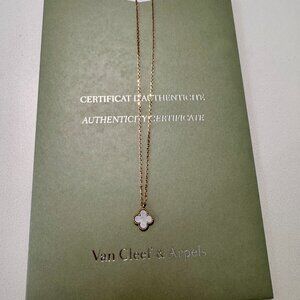 Brand new, never worn Sweet Alhambra Mother of Pearl pendant necklace purchased in Palm Beach, FL. I ended up choosing the larger size and couldn’t return this one once the return window closed. It has been stored safely in its box since purchase and is in perfect condition.