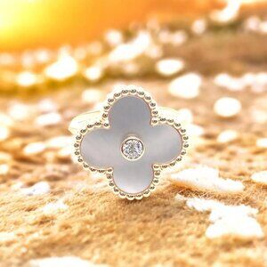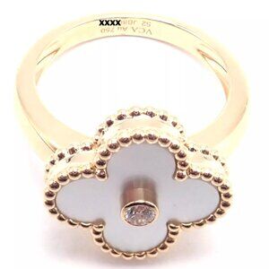 Van Cleef & Arpels Vintage Alhambra 18k Yellow Gold Mother Of Pearl Diamond Ring