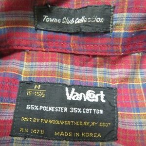 Van Cort Woolworth Button Up Shirt Red Plaid Medium 15 - 15 1/2 Towne Club 70s