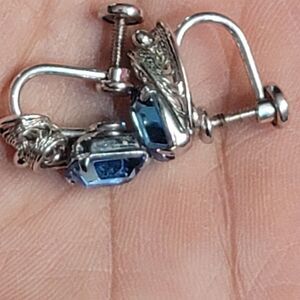Add a touch of vintage beauty to your outfit with these stunning Van Dell screwback earrings. Crafted from high-quality sterling silver, these earrings feature a lovely leaf shape with a prong setting style and a huggie, stud closure for a comfortable wear. The earrings are adorned with two beautiful blue crystals that sparkle in the light, making them perfect for any nature or art themed occasion.