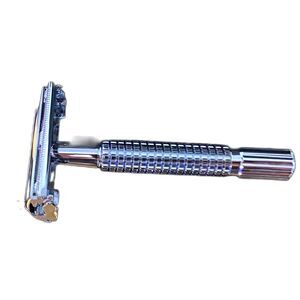 Experience a superior shaving solution with the Van Der Hagen TWIST Adjustable Safety Razor. This sleek silver razor features a 3/8 inch blade width and a convenient butterfly opening mechanism for easy blade replacement. Although it does not come in the original box, this never-used razor includes five cartridges, allowing for a customizable shave tailored to your preferences. Enjoy a smooth, precise grooming experience.