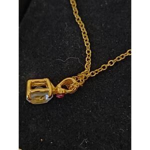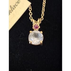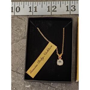Van Doran Genuine Ruby Necklace Gold Tone Chain Rhinestone In Original Box