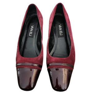 Van Eli Burgandy Suede with Patent Leather Cap Toe woman's Sz 6.5 M EUC