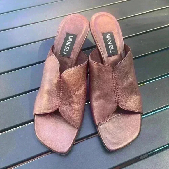 Van Eli Leather Burgundy Low Heel Sandals Size 9.5
