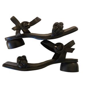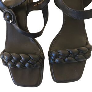Van Eli Womens Open Toe Braided Strap Block Heel Leather Sandals Black Size 7M
