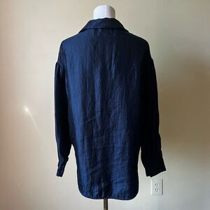 Deep navy blue iridescent, metallic long sleeve button up shirt
