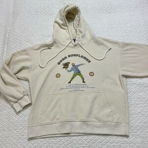 Van Gough Sunflower Hoodie. Please see photos for measurements, there’s no size tag. Also, please see photos for indications of use, there’s some discoloration on sleeve.