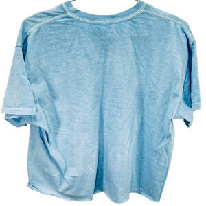 Pay tribute to the mighty Van Halen with this roomy, light blue, 100% cotton, cropped T shirt that would be perfect to wear to a concert, the gym, out with friends or around the house.