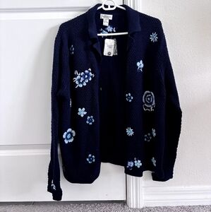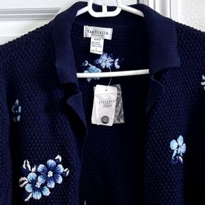 Van Hausen Vintage Navy Blue Floral Women's Embroidered Cardigan