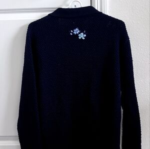 Fantastic navy blue embroidered cardigan, vintage (90's) and of great quality.