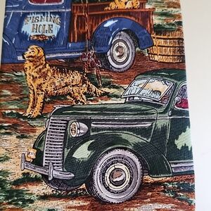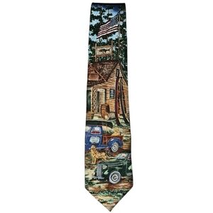 Van Heusen 100% Silk Tie Featuring a Dog, Car, and Fish Cabin Print.