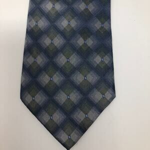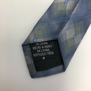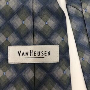 This is a Van Heusen men’s silk tie. It is 60” long and 4” wide. Blue and silver in a checkered pattern.