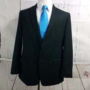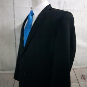 Van Heusen 44R 2 Button Black 2pc Suit 33x30 Flat Front, not Cuffed