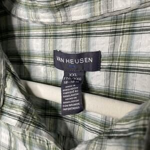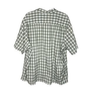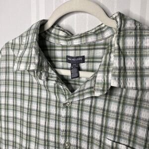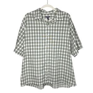 Van Heusen AIR Short Sleeve Plaid Crinkle Button Down Shirt XXL Green White Mens