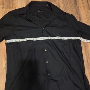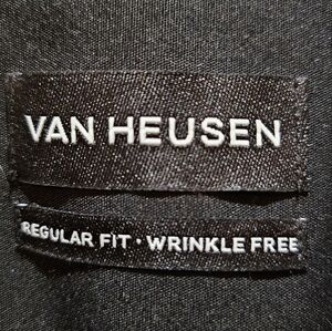 Van Heusen black button-up shirt with a sleek design. Perfect for any night on the town, date night, or casual outing.