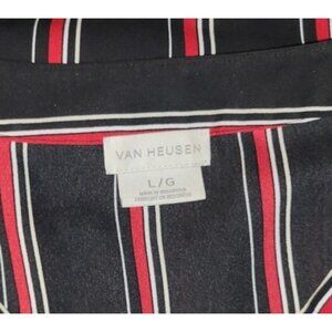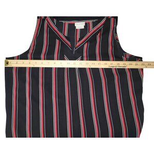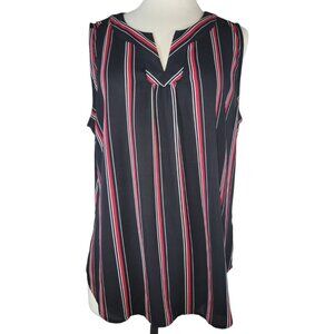 Van Heusen Black Red Striped Button Front Shirt Blouse Sleeveless Large L