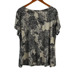 Plus size XXL, blouse, top, shirt. cream, black, gray, multicolor, square neckline, fitted sleeves, short sleeves, polyester, floral, flower, unlined, collarless, stretch, all seasons, jersey knit, casual, workwear, office, party, cocktail, evening, formal, pullover, winter, spring, summer, fall, made in united states, machine washable