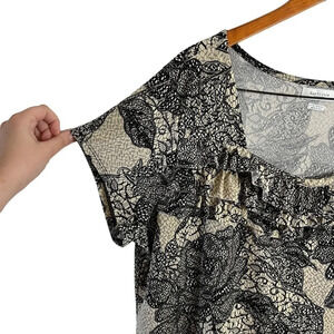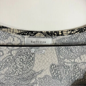 Van Heusen Blouse XXL Rose Floral Ruffled Square Neck Cream Black Gray Dressy