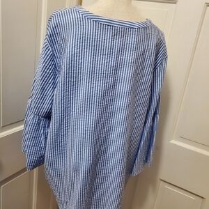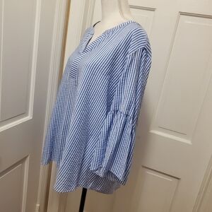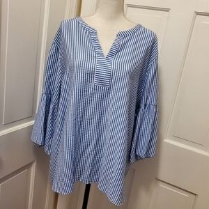 Van Heusen Blue & White Striped Blouse Size XXL=14/16, Preppy, lightweight