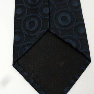 This tie has a really cool almost 3D effect. There are shadows done in black satin stitching around the dots and rings. At certain side angles the dots appear to lift off the tie. Very hard to capture in photos.