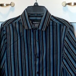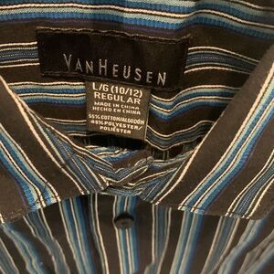 Van Heusen | Boys Black Blue Striped Button Down Dress Shirt 10