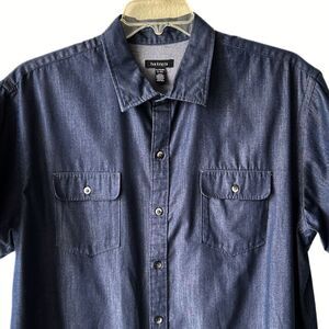 Van Heusen Button Down Denim Blue Cotton Short Sleeve Collared Shirt Men’s XL