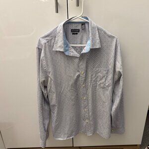 Van Heusen Button Down Shirt Slim Fit Top Men's Size L 16-16 1/2 Polka Dot