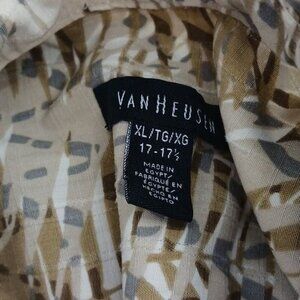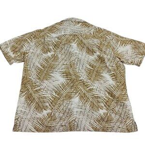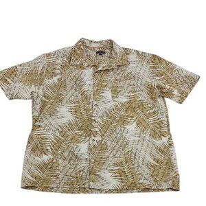 Van Heusen Button Down Shirt Tan Tropical Leaf Pattern Short Sleeve Size XL