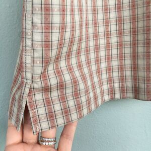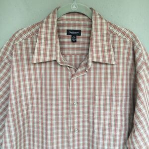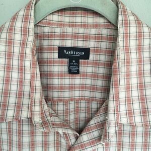 Van Heusen Button Up Camp Shirt Men XL 17-17.5 Cotton Blend Plaid Relax Fit Casu