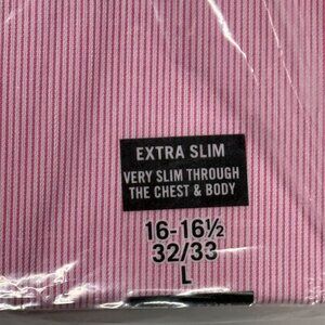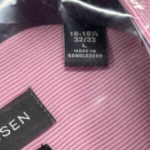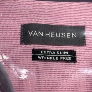 Van Heusen Button Up Shirt Mens 16 16.5 32/33 L Pink Stripe Wrinkle Free Slim