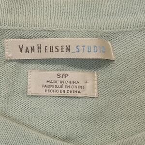Van Heusen Cardigan Sweater S Women's Studio Lace Front Long Sleeve Green Cotton