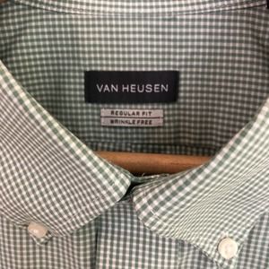 Van Heusen Checkered Dress Shirt Men Large 16.5 34-35 Regular Fit Wrinkle Free