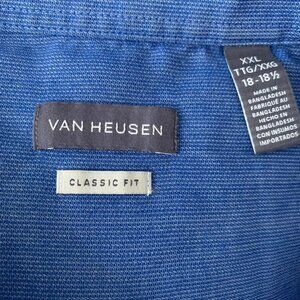 Van Heusen Classic Fit Button Down Shirt XXL Blue Short Sleeve Pocket Cotton