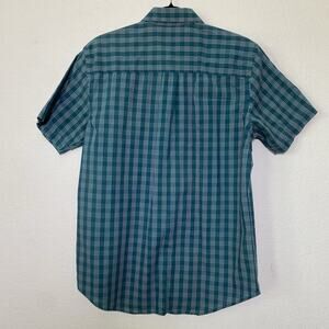 Van Heusen Classic Fit Short Sleeve Button Down Teal Mens Medium Preppy Timeless Plaid Casual Summer Occasional Business Smart Casual Relaxed Versatile Church Office