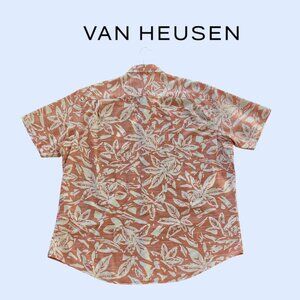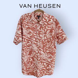 Van Heusen Cotton Mens Button Down Short Sleeve Hawaiian Party Casual Shirt.