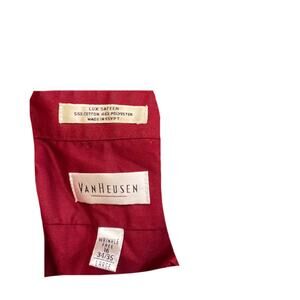 This Van Heusen dress shirt is in great condition and ready to wear. The wrinkle-free fabric makes it perfect for travel or a busy work day. The cranberry color is a great way to add some color to your wardrobe.