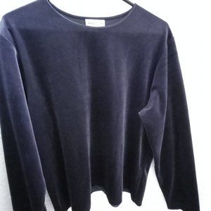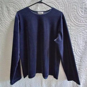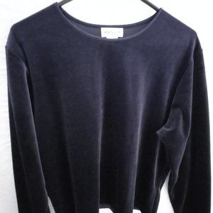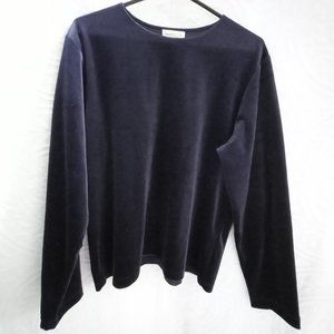 Van Heusen Dark Blue Stretch Velvet Long Sleeved Crew Neck Top Shirt Size LG