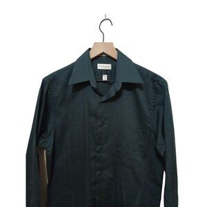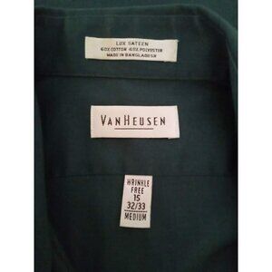 Van Heusen Deep Teal Lux Sateen Button Down Dress Shirt Sz M 15 (32/33)