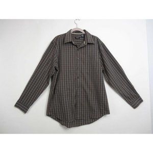 Van Heusen Dress Shirt Button Up Size Large 16 -16 1/2 Brown Plaid Long Sleeve