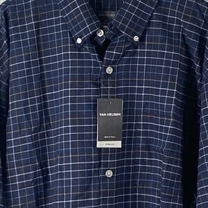Van Heusen Dress Shirt Men's 2XLB Blue Flannel Plaid Long Sleeve Button Up NEW