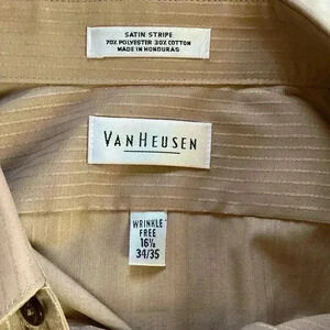 Van Heusen Fitted Satin Stripe NWT Wrinkle Free 16 1/2 34/35 Tan Shirt **NWT**
