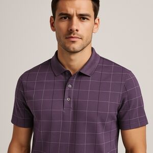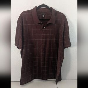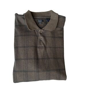 Van Heusen Flex Classic Fit Cream Plaid Polo Shirt Large